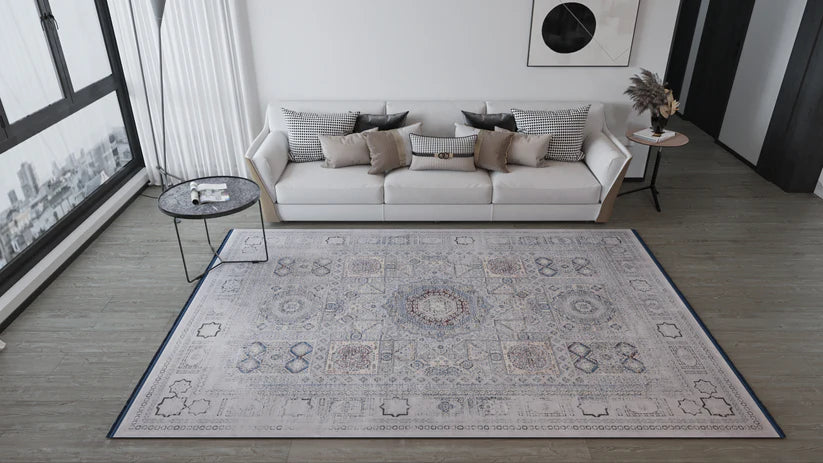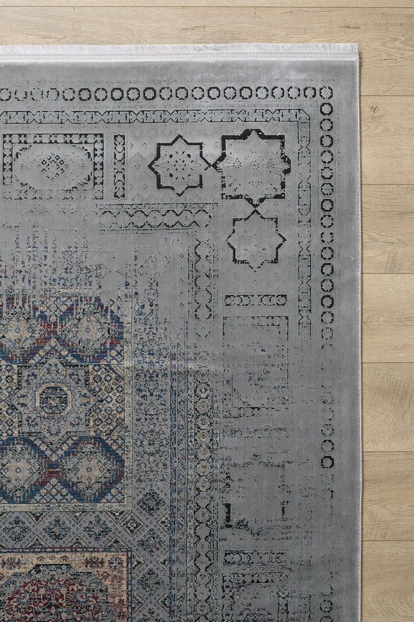 Karmaşık simetrik desenlerle çevrili bu halı, baskın orta madalyonuyla asil bir çekicilik yayan göz alıcı bir parça. Derin ve canlı tonları sıcaklık ve zarafet uyandırırken, birinci sınıf lifleri ayaklarınızın altında yumuşak bir his bırakıyor. Özenle işlenen bu halı, dayanıklılığı zamansız ve zarif bir estetikle birleştirerek odanın ambiyansını yükselten bir inceliğe sahip.