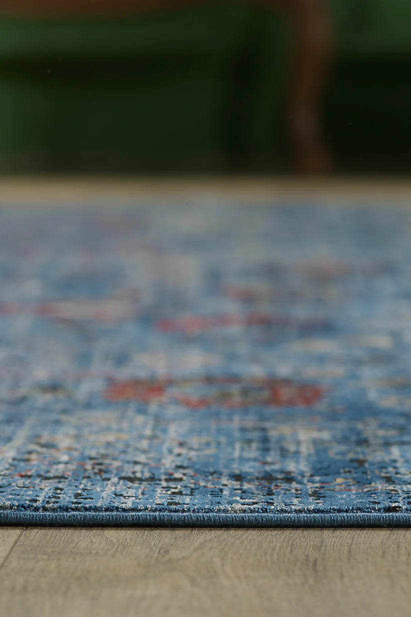 Mavi tonlarının nüanslı bir yelpazesiyle tasarlanan bu halı, her odaya zarafetle uyum sağlayan çok yönlü bir renk paleti sunar. Sanatsal solma tekniği, tasarıma tarih duygusu katarken, yüksek kaliteli lifler zengin renklerinin zamanın testine karşı dayanıklı kalmasını sağlar . Bu parça , klasik dekorun cazibesini çağdaş yaşam alanları için gereken dayanıklılıkla zahmetsizce birleştirir.